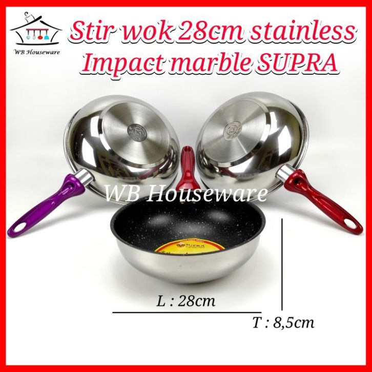 wajan penggorengan teflon anti lengket lapis marble 28cm & 24cm / stir wok impact marble SUPRA