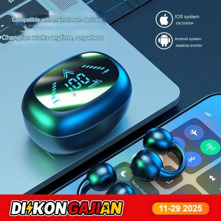 TWS Sporty Headset Waterproof Ear Clip Bluetooth 5.3 Long Battery Life in-ear noise reduction
