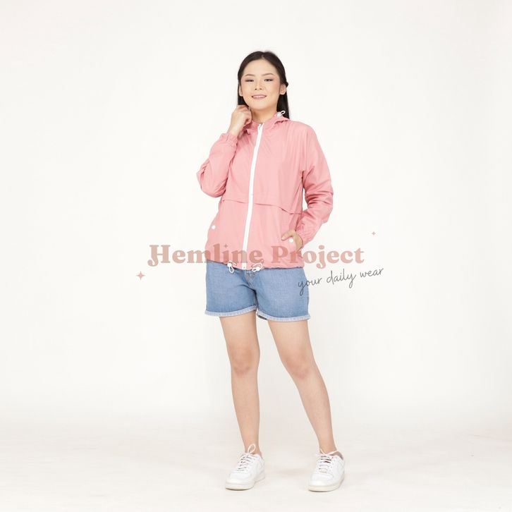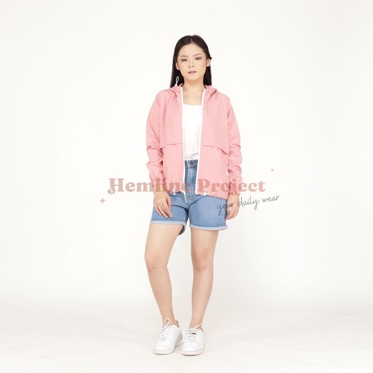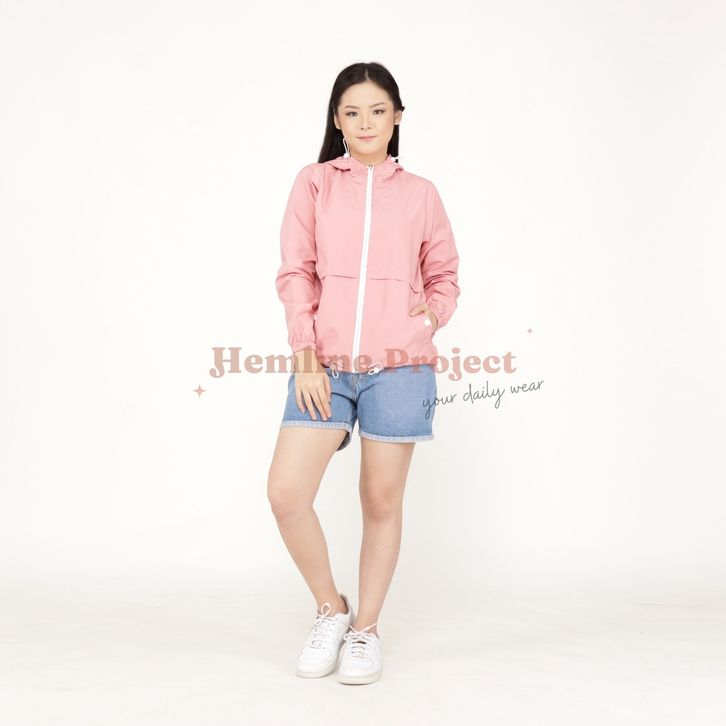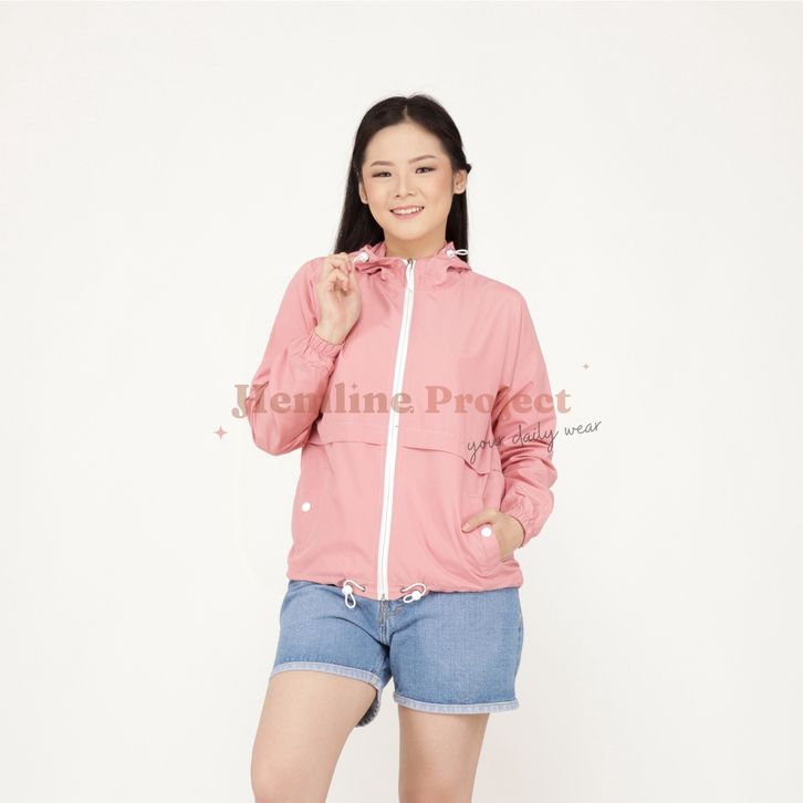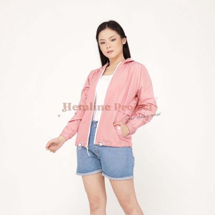 Happy Elmyra Pastel Pink - Jaket Parasut Hoodie Wanita