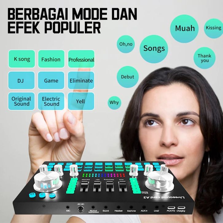 A2 Sound Card Kompatibel dengan mixer DJ Bluetooth nirkabel eksternal