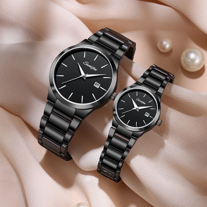 Sunlifex Jam Tangan Couple Tanggal Luminous Santai Tali Stainless Steel Jam Tangan Pria/Wanita