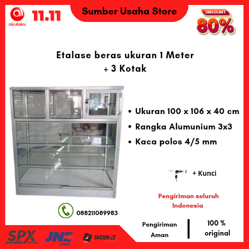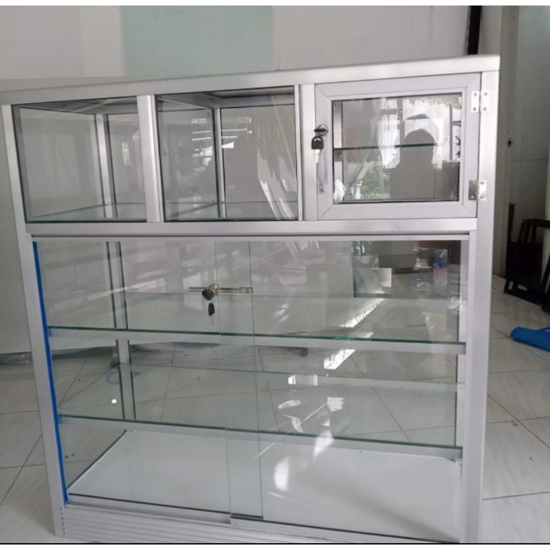 Etalase Kaca Jualan/Etalase Kaca Warung/Etalase Kaca/etalase beras 1 meter 2 kotak beras