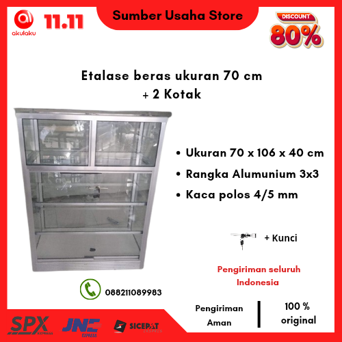 Etalase Kaca Jualan/Etalase Kaca Warung/Etalase Kaca/etalase beras 70 cm