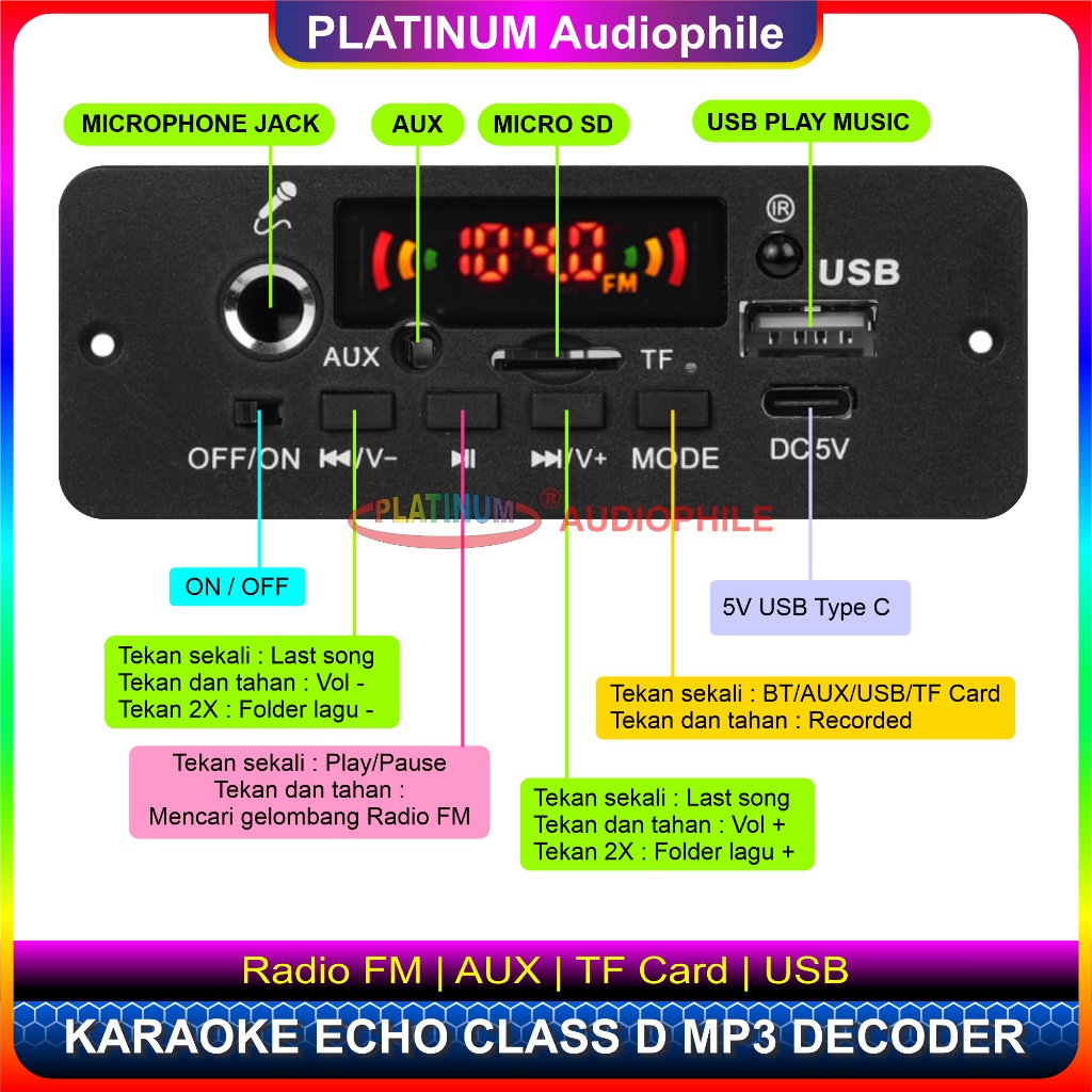DP 0 MODUL MP3 AMPLIFIER CLASS D 80W BLUETOOTH DIGITAL KARAOKE MICROPHONE ECHO AUX USB MICRO SD JQD135BT