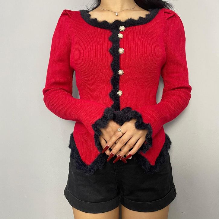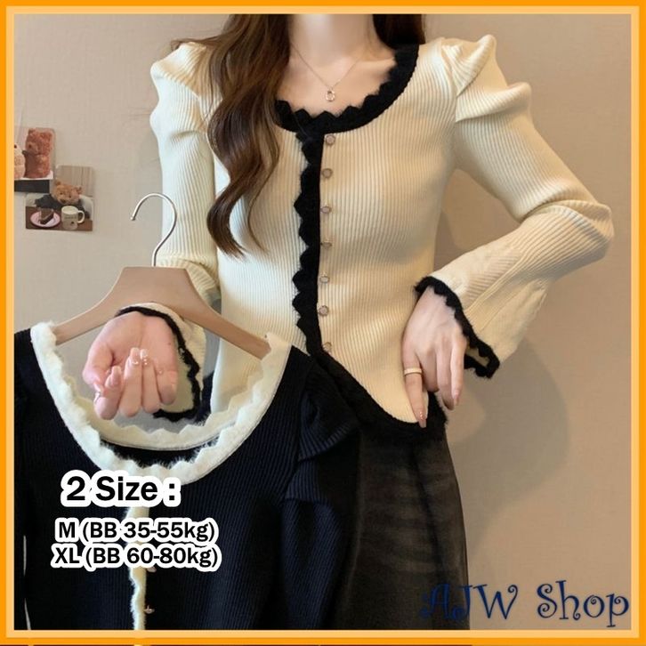 AJW Atasan Wanita Lengan Panjang Flare Knit Import Premium WAZ | Baju Vintage Wanita Lengan Flare | Pakaian Wanita Korea