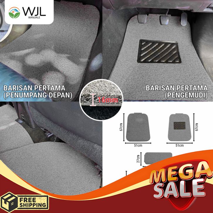 WANJIALE Karpet Mobil 5 Pcs 2 Baris Universal - Mie Bihun PVC - Ketebalan 16MM/ Universal bisa diaplikasikan ke semua mo