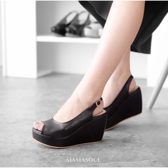 DP 0 MAMASOUL VANESSAWEDGES SEPATU SANDAL WANITA TALI SENDAL 9CMHITAM36