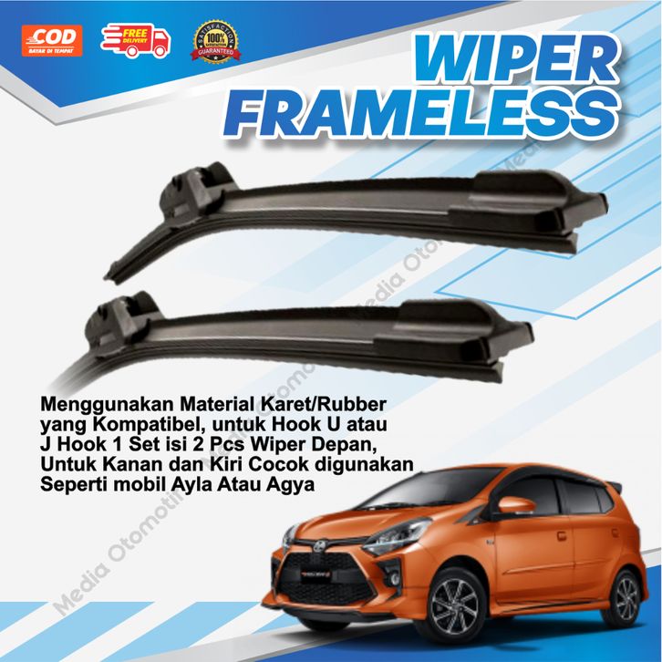 Wiper Mobil Wiper Mobil Agya dan Ayla Frameless Premium Tanpa Rangka Besi 20 dan 14 Inci Termurah Bisa