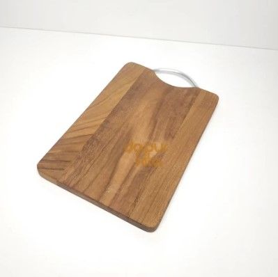 Talenan Kayu Jati Premium Model Pegangan Alumunium Ukuran 20 x 30 Cm