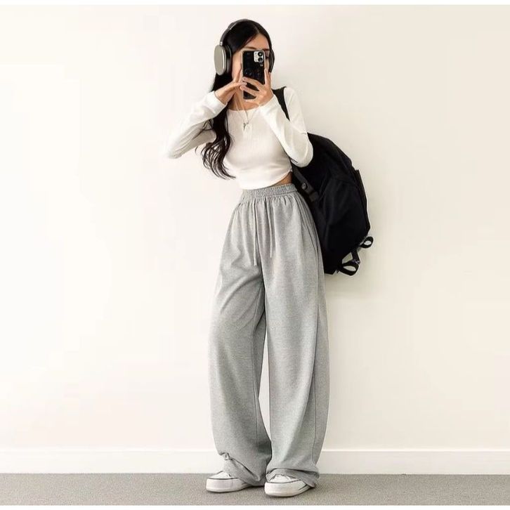 [Star] Sweatpants Baggy Fit Wanita Celana Panjang Loose Pants Pria Casual Style Korea
