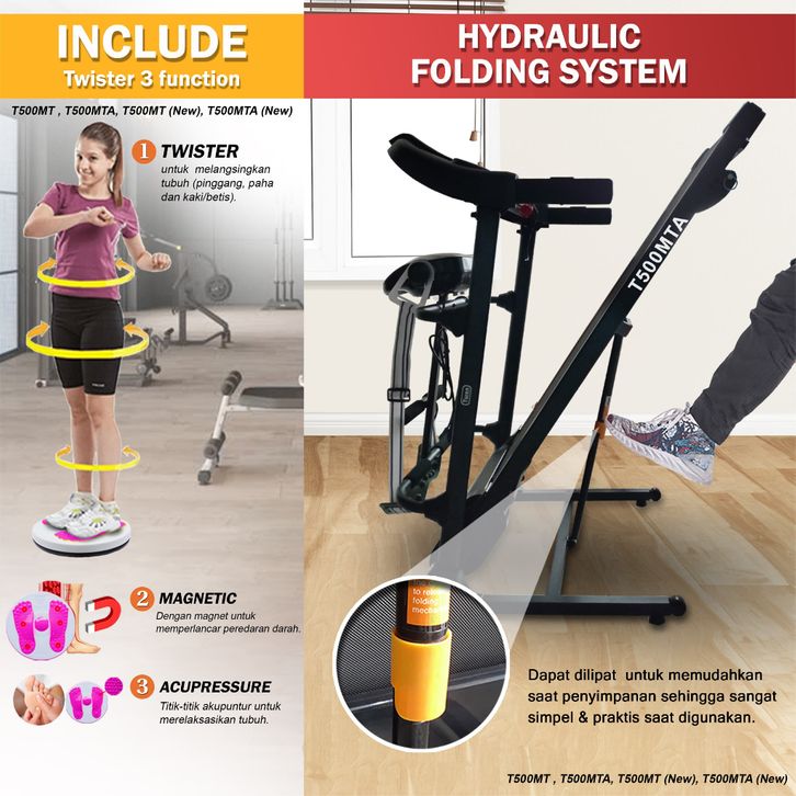 Treadmill Listrik Portable Multifungsi Low Wat T500MT new T500MTA