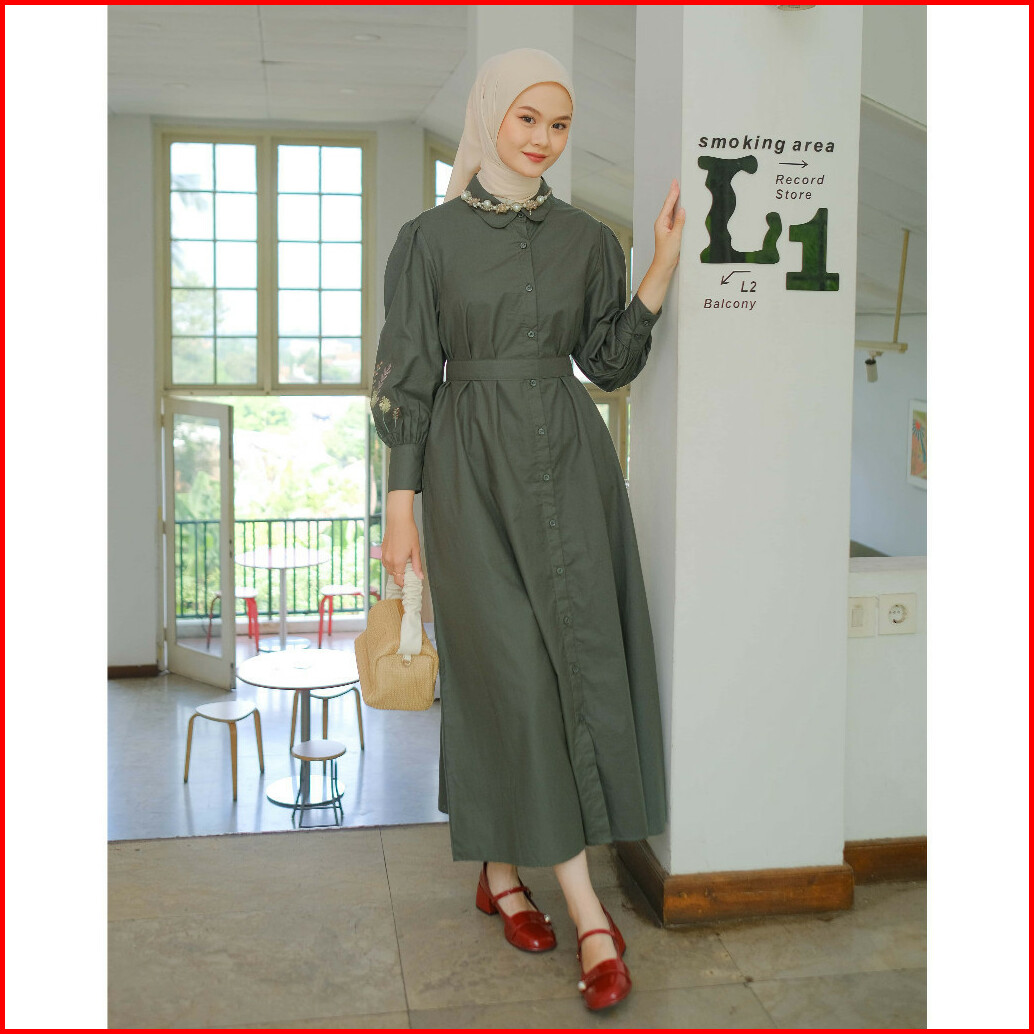 Mayoutfit Neody Mididress Dress Kondangan Poplin Motif Bordir Embroidery