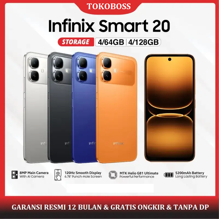 INFINIX SMART 20 4GB/128GB | Mediatek Helio G81 Ultimate | 5200mAh 15W | Garansi Resmi 12 Bulan