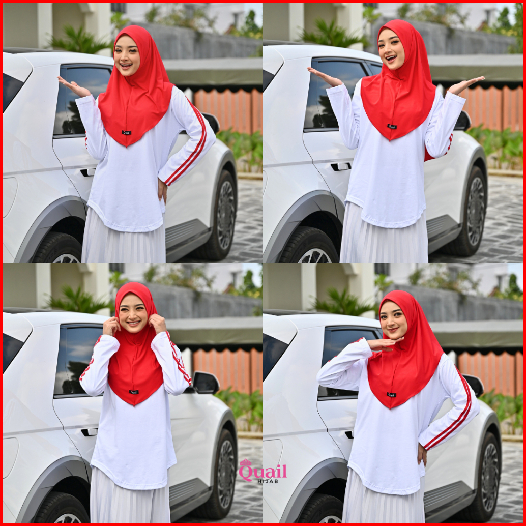 Quail Hijab - Inayra Hijab Sport Jilbab Kerudung Non Pad Sport Jersey Premium Kerudung Agustusan Kemerdekaan