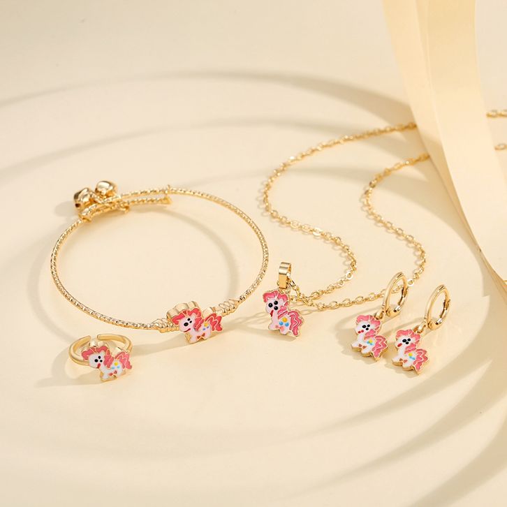 Cincin Anak Anak Perempuan Pony Set Perhiasan Anak Pony Kalung Cincin Anting Gelang Set Y042