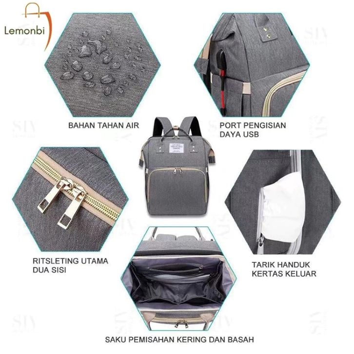 Tas Bayi Multifungsi 2in1 Tempat Tidur Lipat Baby Diapers Bag Perawatan Perlengkapan Ransel Backpack Canvas Anti Air