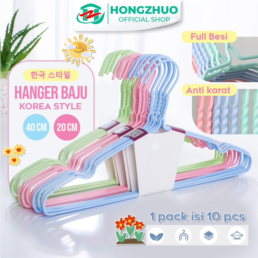 HONGZHUO X RED HOUSE GANTUNGAN BAJU STAINLEES STEEL 10PCS HANGER BAJU DEWASA HANGER BAJU ANTI KARAT HANGER BAJU WARNA PASTEL GANTUNGAN SERBAGUNA