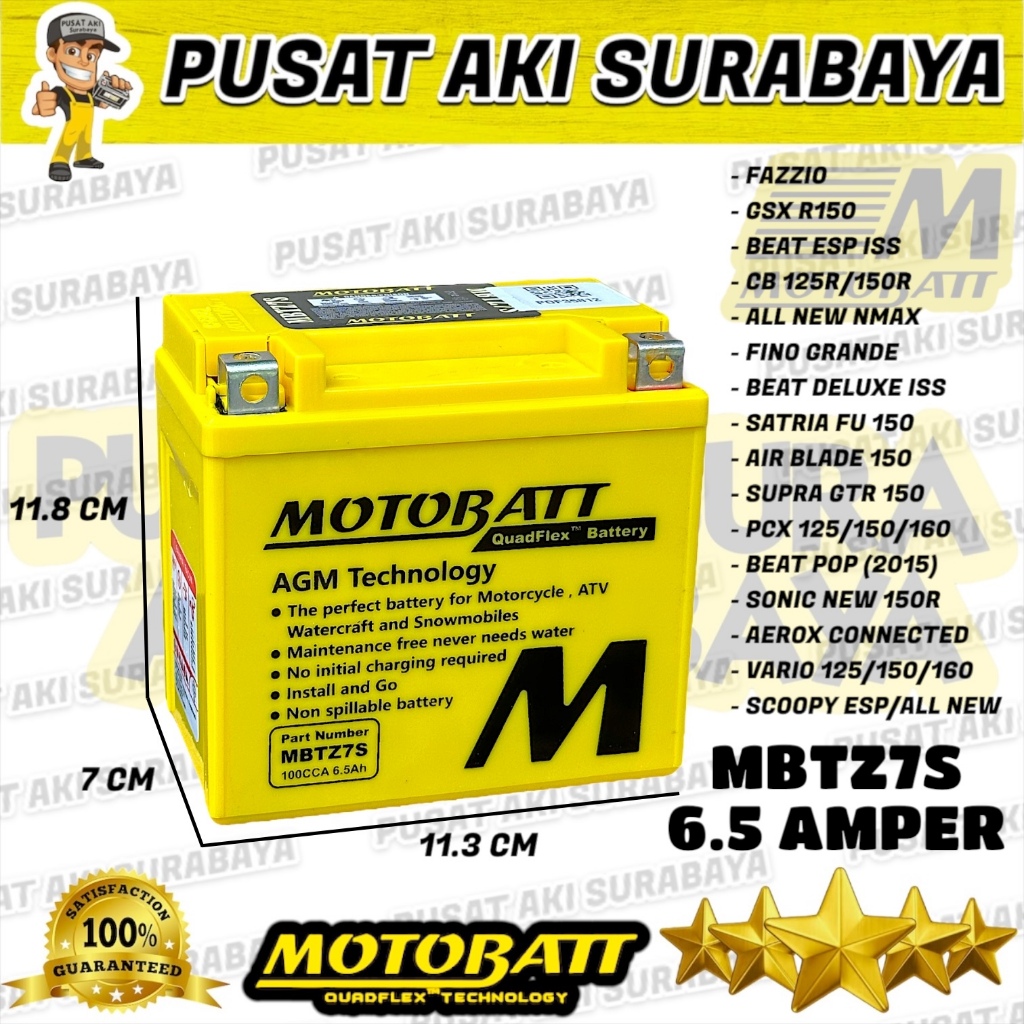 AKI GEL VARIO 160 MOTOBATT MBTZ7S 12 VOLT 6.5 AMPER SONIC NEW 150R SATRIA FU MTZ6S YTZ6V GT7ZS