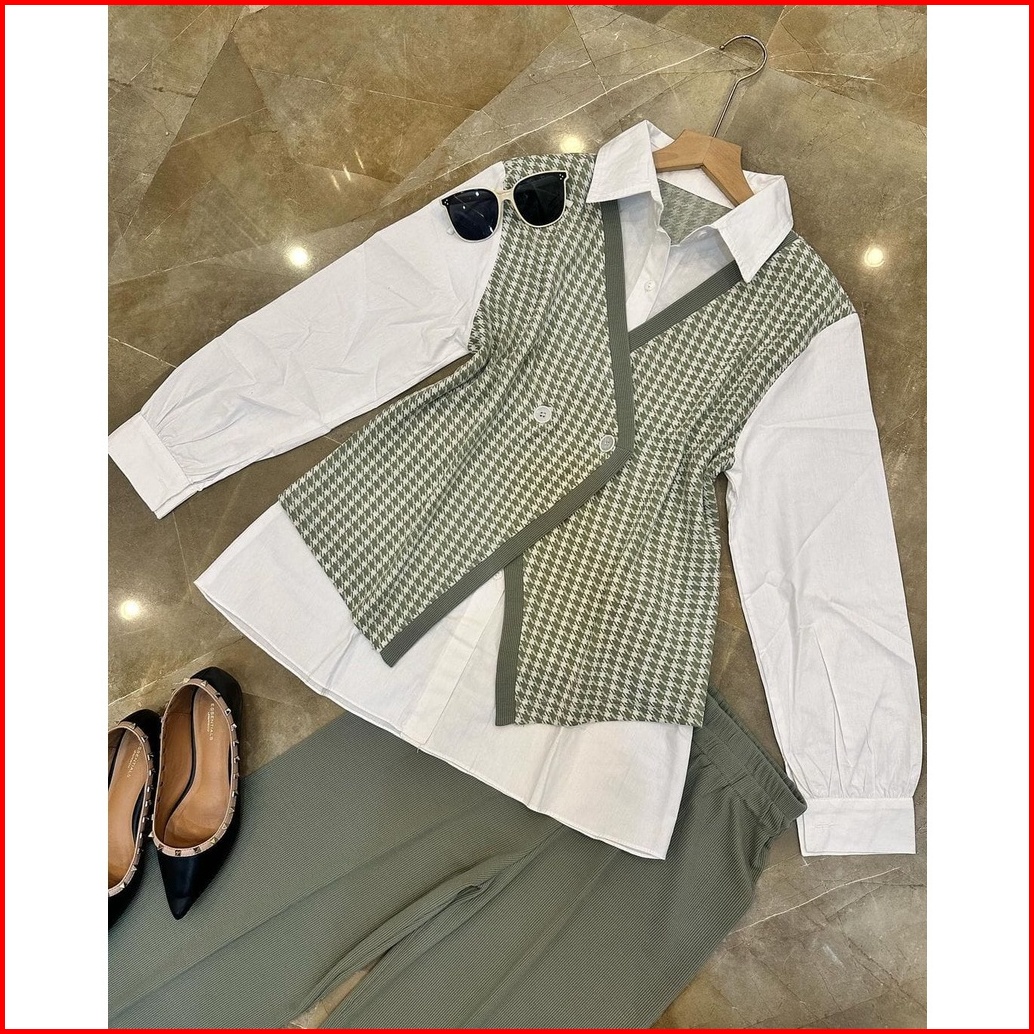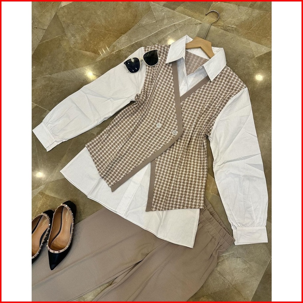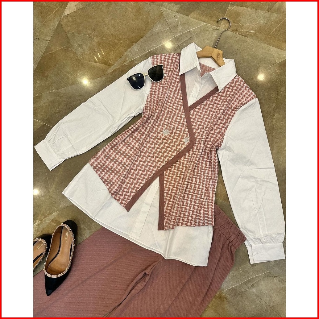Femes Velove Set Setelan Bestie 2in1 Wanita Muslim Matt Houndstooth Knit Ootd Korean Style