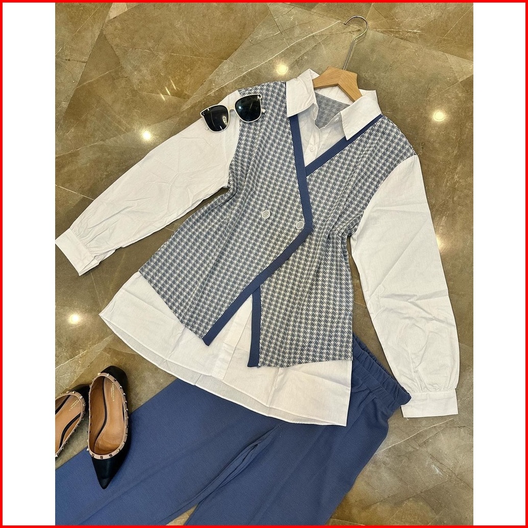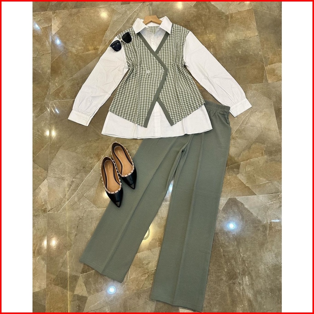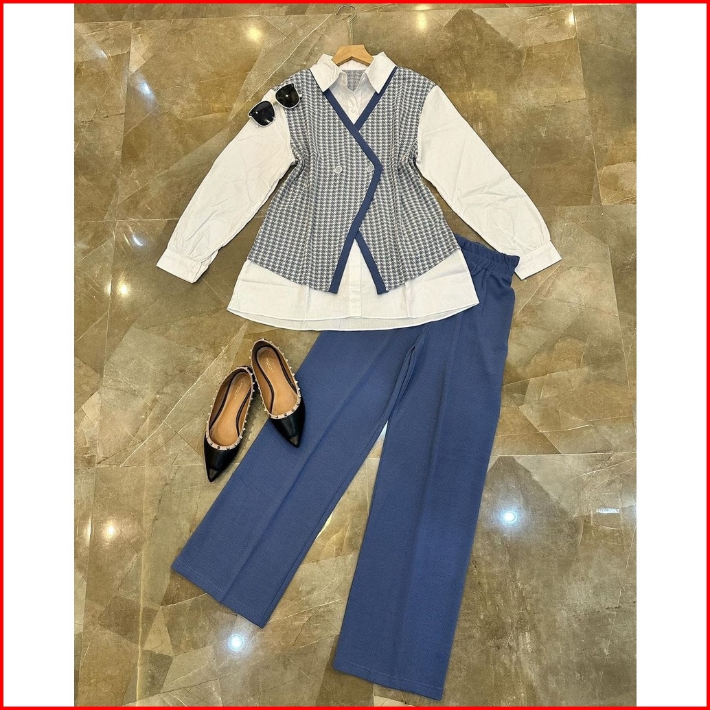 Femes Velove Set Setelan Bestie 2in1 Wanita Muslim Matt Houndstooth Knit Ootd Korean Style