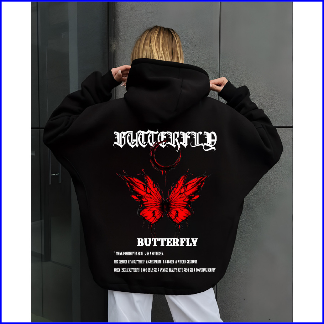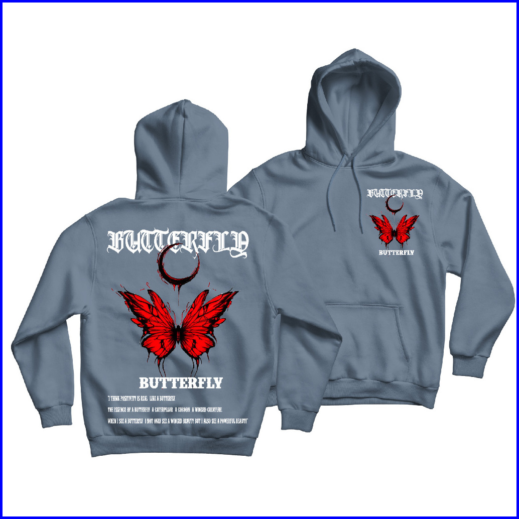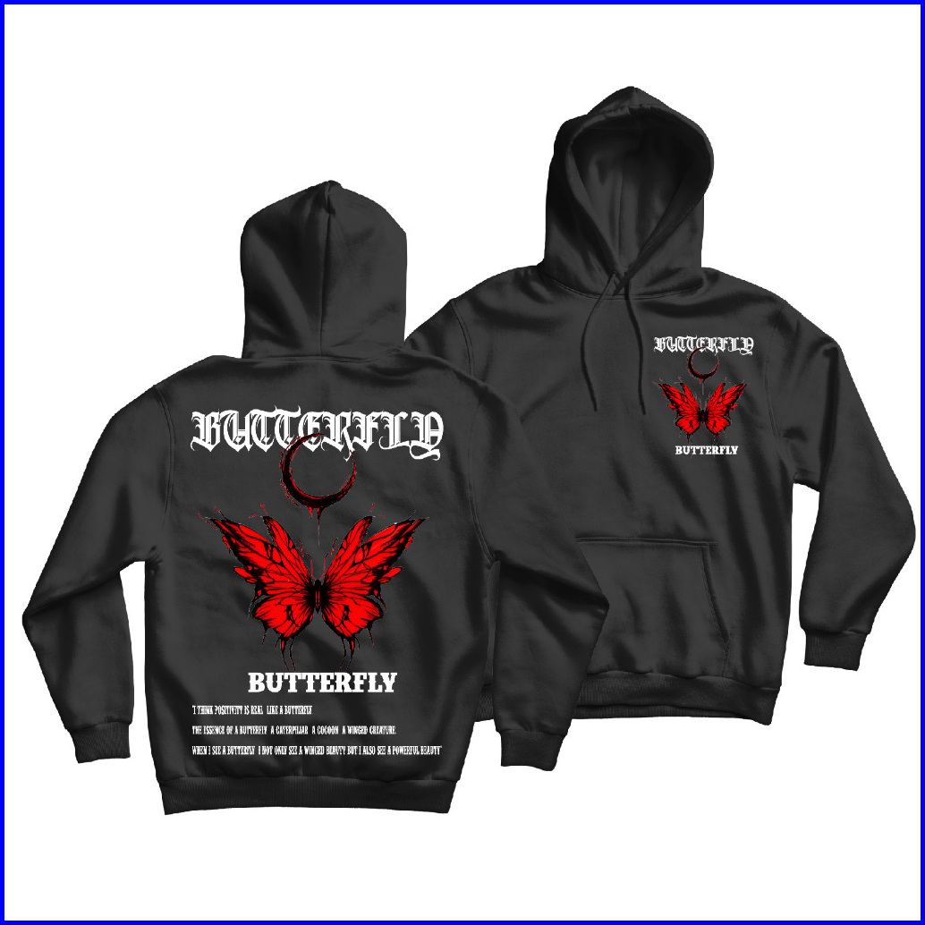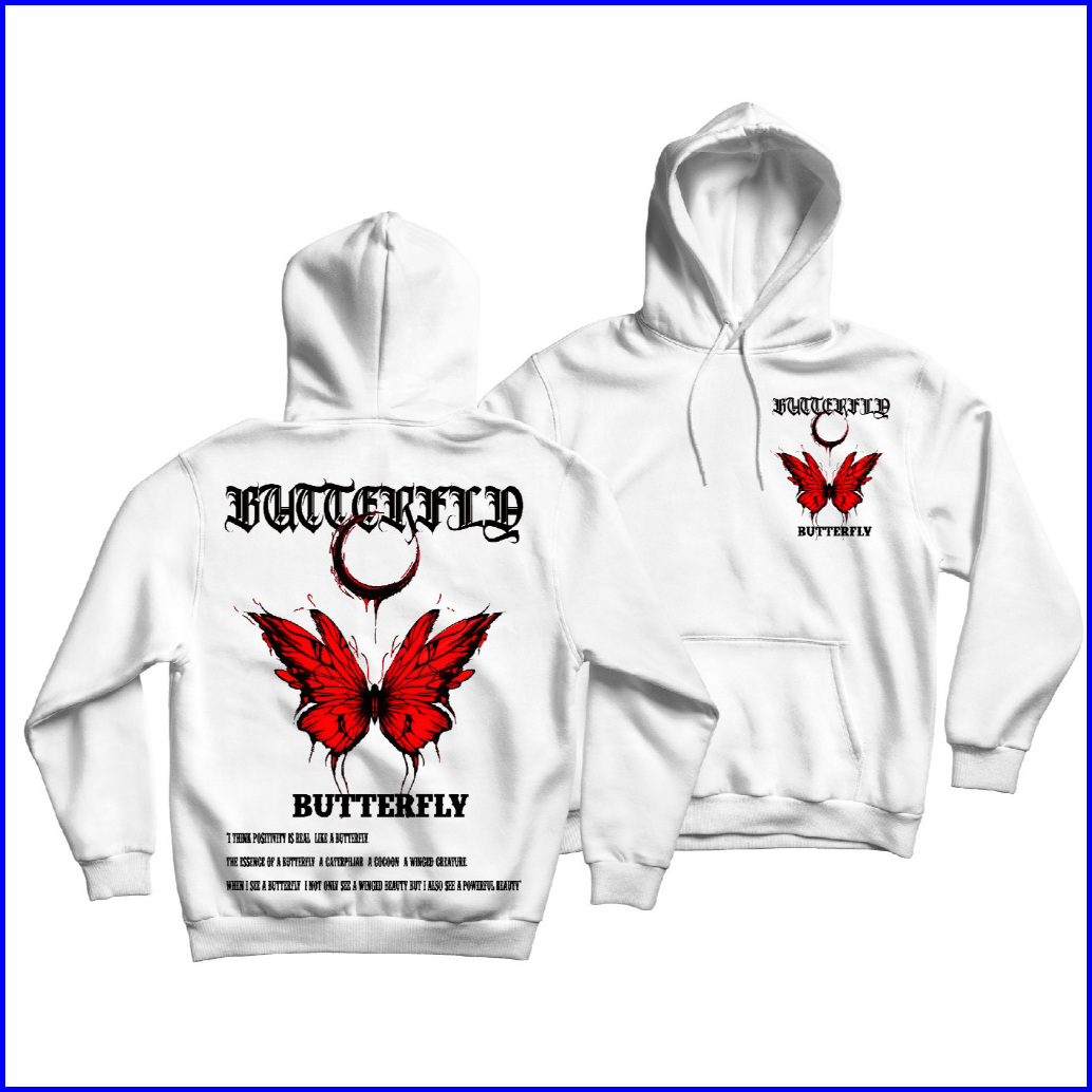 Fenjack Sweater Jumper Red Butterfly Sablon Depan Belakang Size M-xxl - Pria Wanita