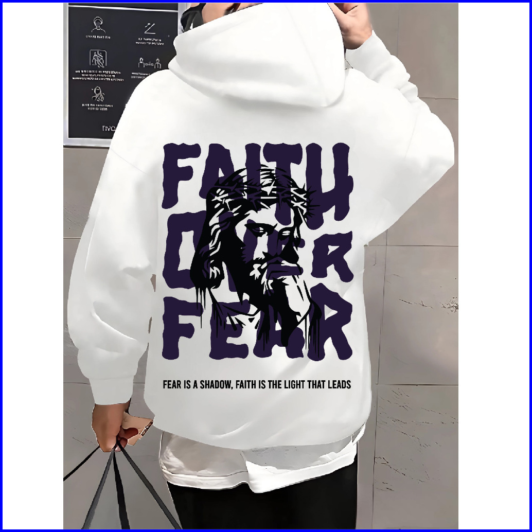 Fenjack Hoodie Jumper Faith Over Fear Sablon M -xxl Pria Wanita