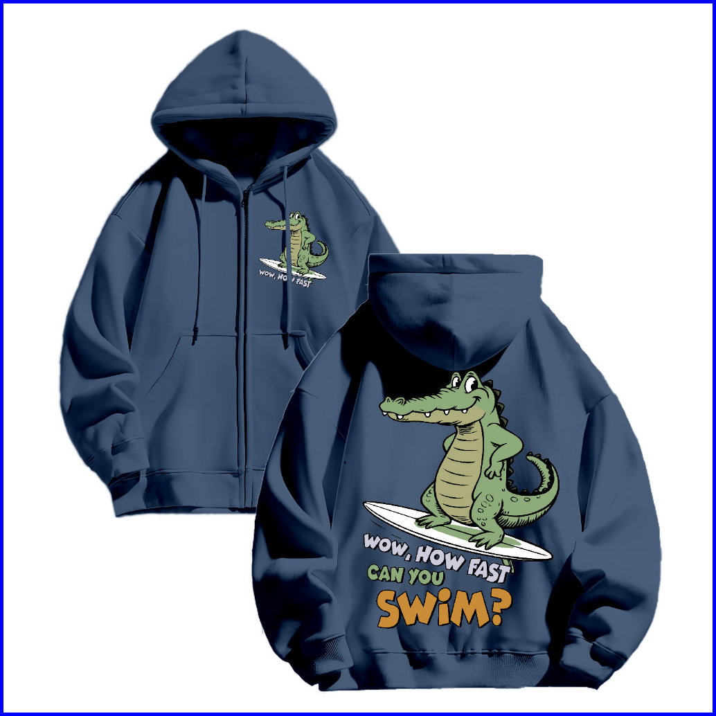 Fenjack Hoodie Zipper Crocodile Fast Swim Size M-xxl - Pria Wanita
