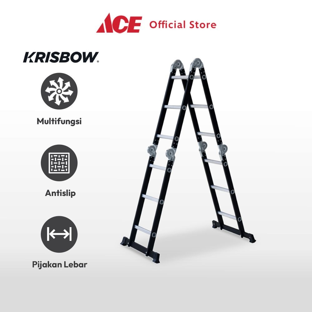 KRISBOW 3 MTR TANGGA LIPAT ALUMINIUM STEEL 4X3 STEP - HITAM MULTIFUNCTION HOUSEHOLD LADDER PERALATAN RUMAH TANGGA TANGGA BUKA TUTUP FOLDABLE LADDER