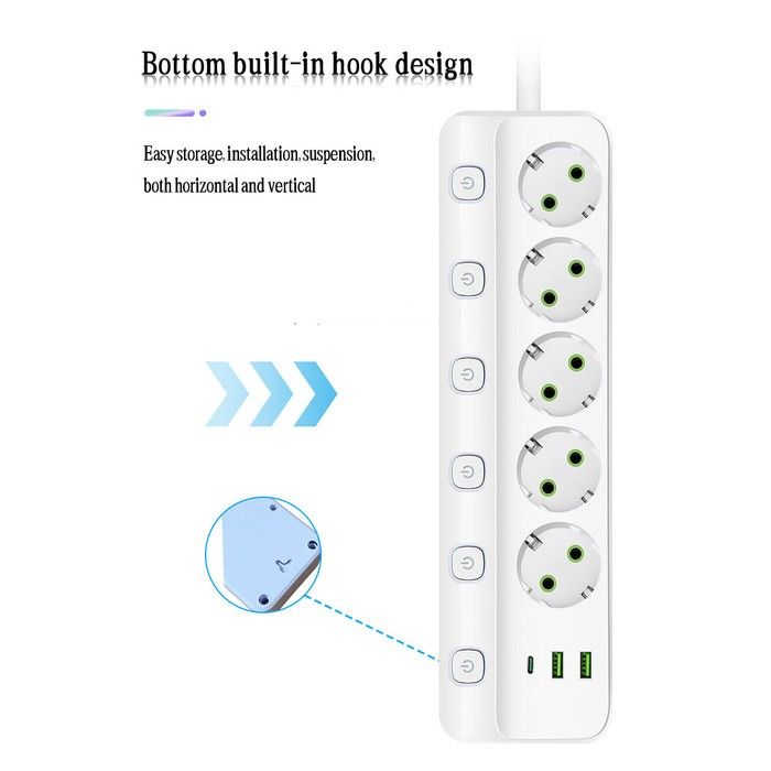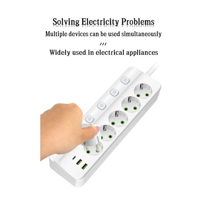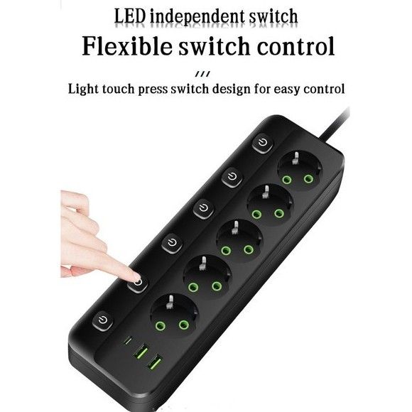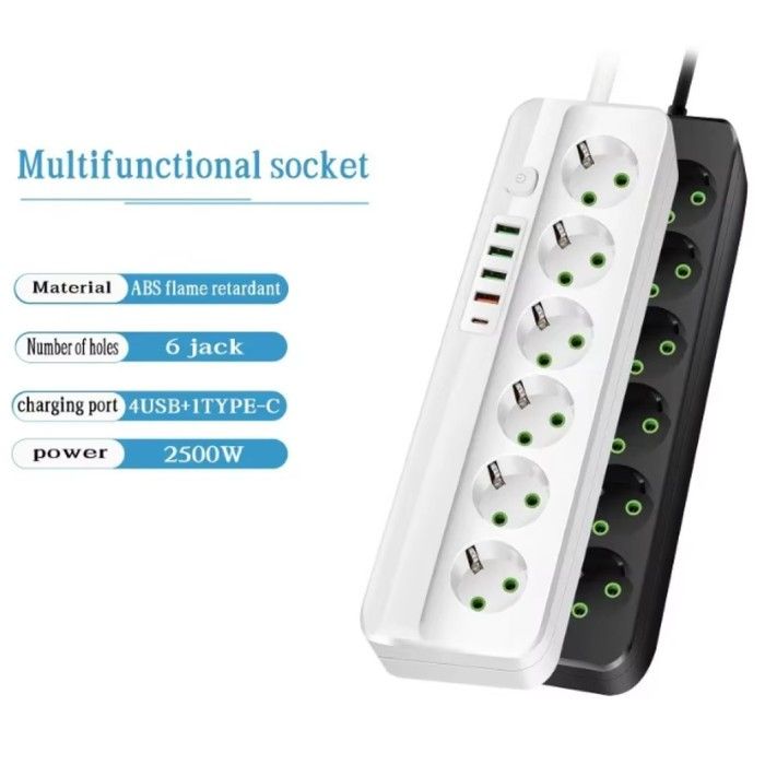 Stop Kontak Kabel USB Type C Terminal Listrik Switch Power Socket Strip 10A Fast Charger 2 3 4 5 6 Lubang