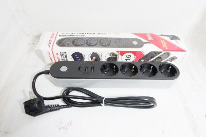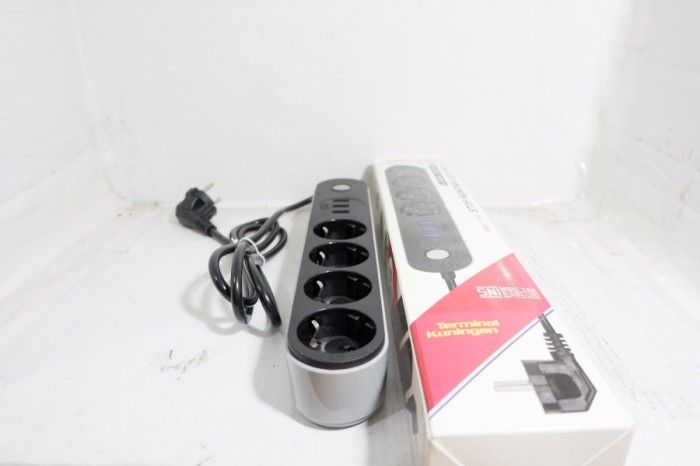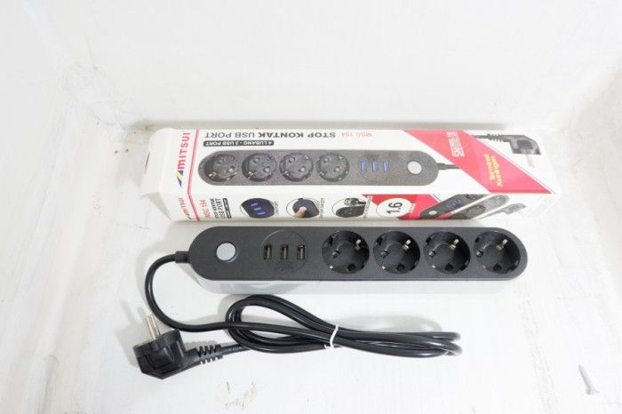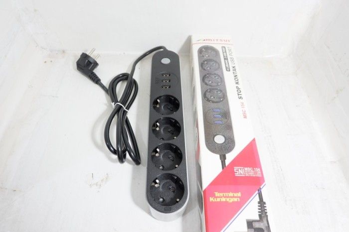 Stop kontak listrik mitsui 4 lubang 3 USB port terminal kuningan SNI