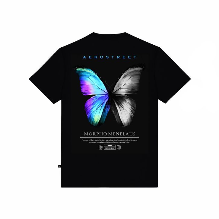 Kaos Distro Aerostreet T Shirt Morpho Menelaus Hitam Cotton Combed 30S T-Shirt Premium