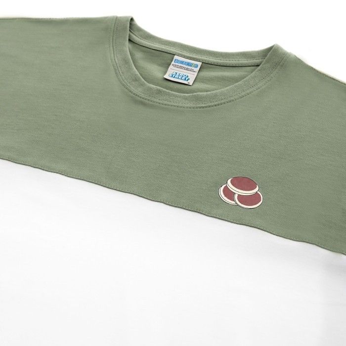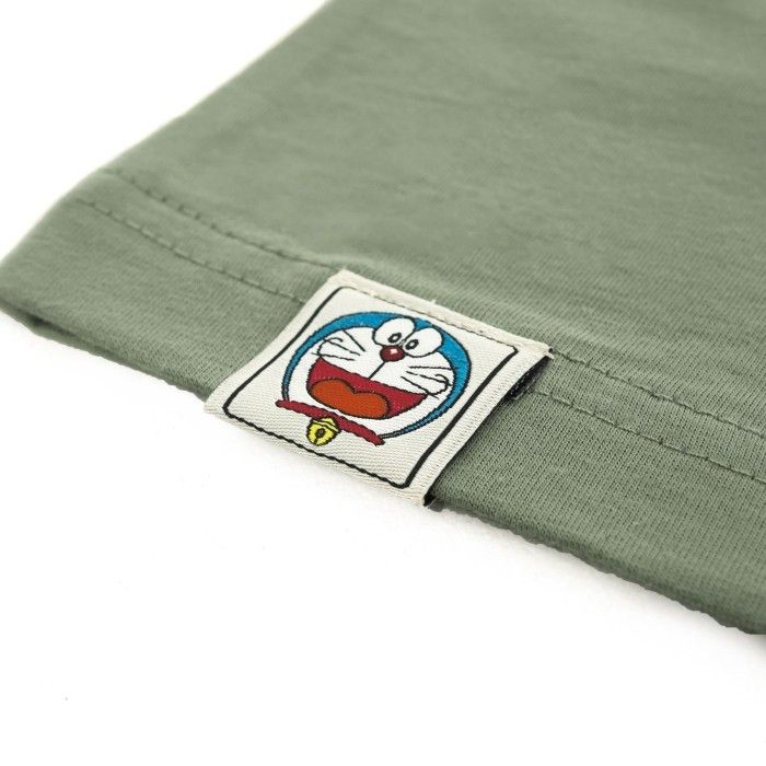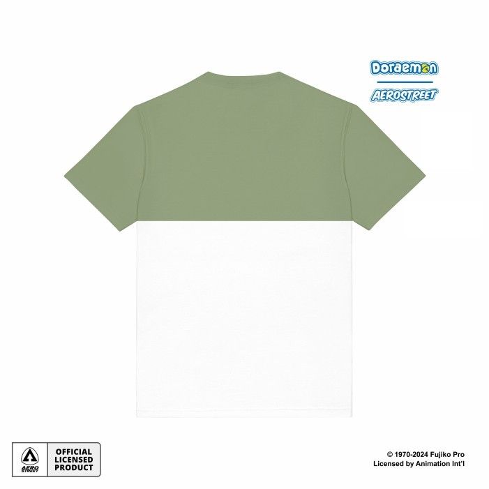 Aerostreet T Shirt Doraemon Dorayaki Half Off White Hijau Army Muda Kaos ABAAA