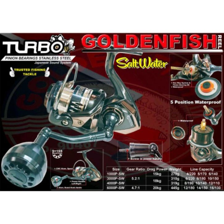 REEL POWER HANDLE SALTWATER 9oldEN FISH TURBO 1000-6000
