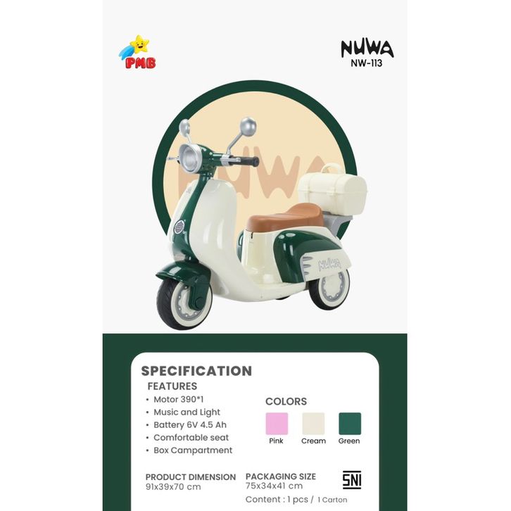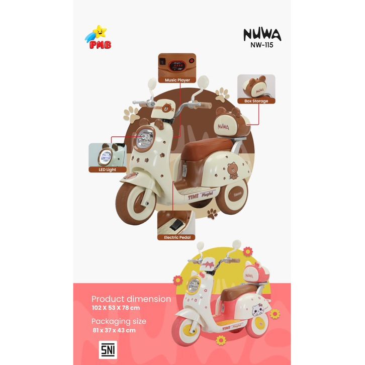 Motor Aki Anak PMB NUWA NW113 NW-Motor Aki Anak PMB NUWA NW11113 Kendaraan Mainan Motoran Scoopy Exotic EMT2242 EMT-2242