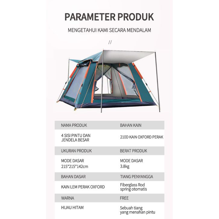 Tenda Camping 4-6 Orang Portable WatTerproof Camping Tent / kebutuhan semalam yang liar Aksesoris Tenda KUALITAS PREMIUM