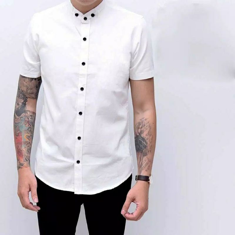 (Gratis Ongkir) Kemeja Cowok polos lengan panjang slimfit hem pria kantor hitam navy putih