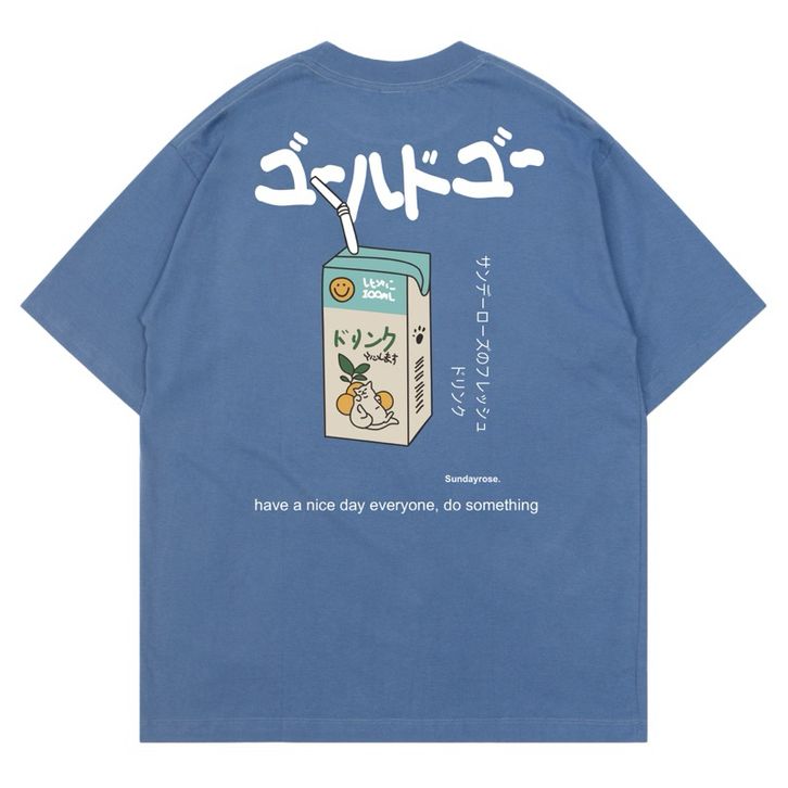 SUNDAYROSE T-Shirt Oversize Kaos Drink Steel Blue