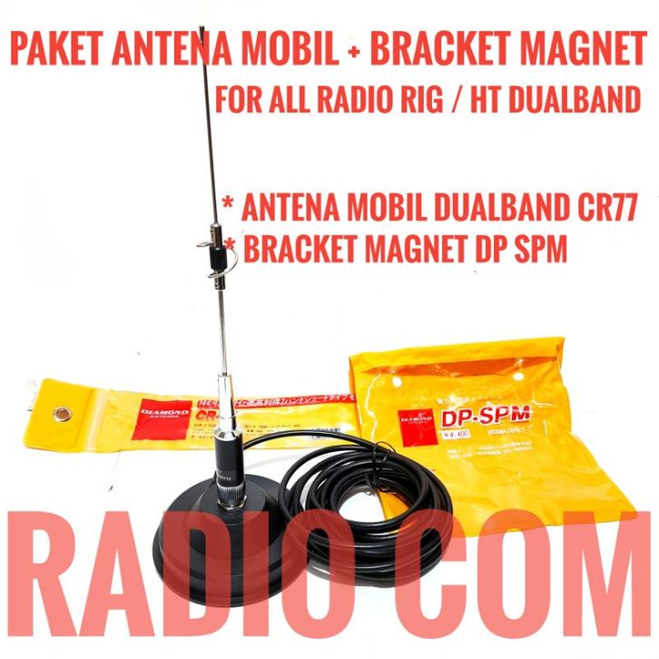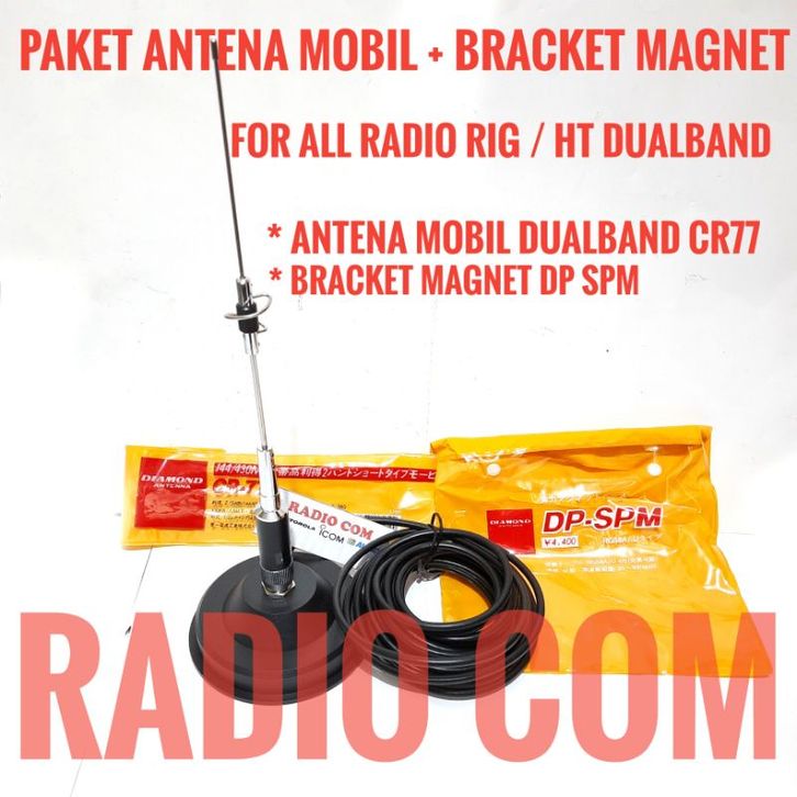 PAKET ANTENA RADIO MOBIL DUALBAND CR77 PLUS BRACKET MAGNET DP SPM - ANTENA RADIO RIG MINI BRACKET