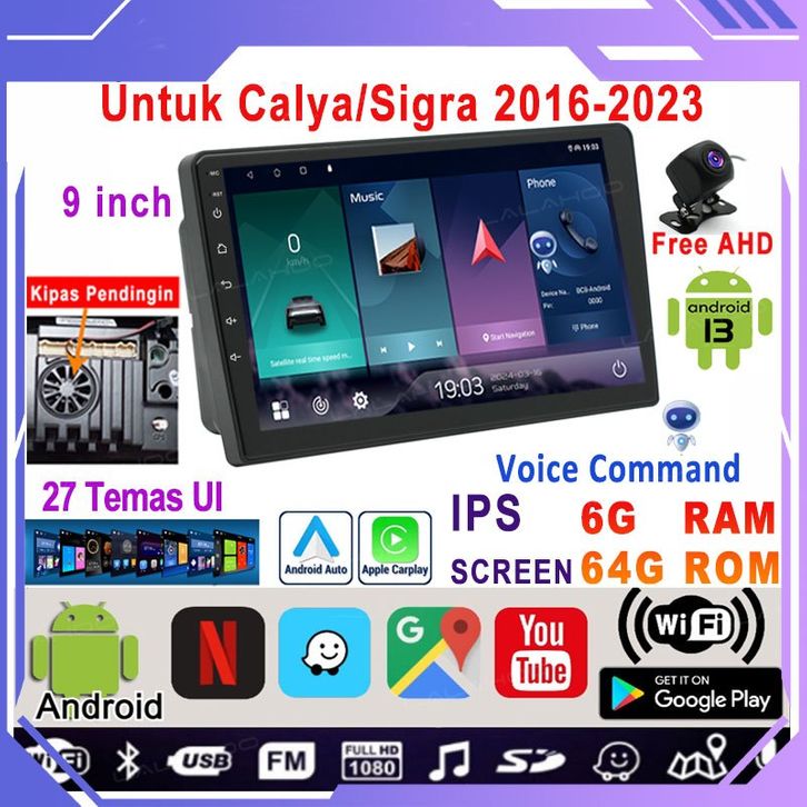 【Ada Kipas Pendingin】9 Inch 6G+64G Android 13 Head Unit Untuk Calya/Sigra 2016-2023 Termasuk Frame/PNP Soket IPS Screen