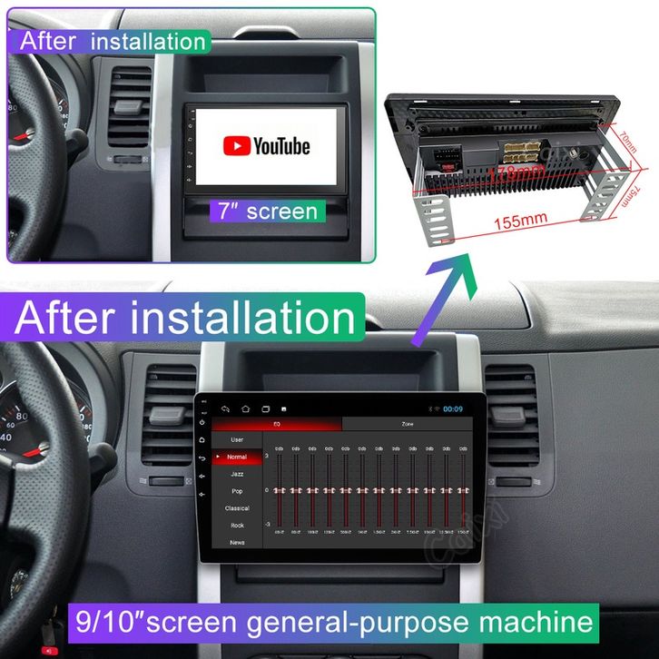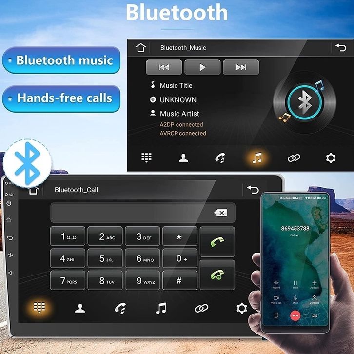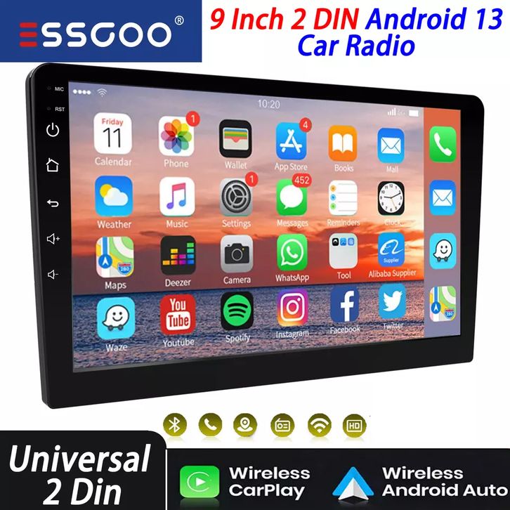 ESSGOO Head Unit Android 13 mobil 4GB+64GB 7/9/10 Inch 2 Din Kontrol Suhu IPS Layer Mobil Navigasi
