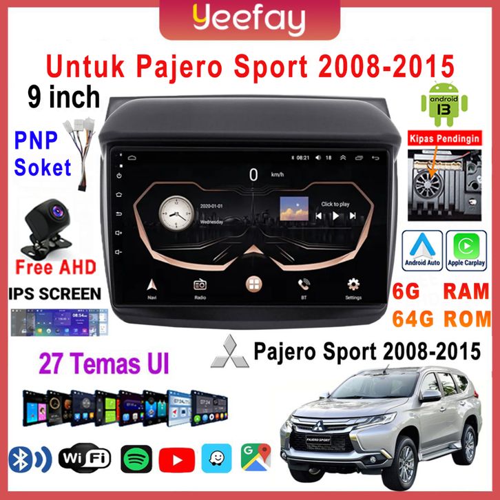 ✨with cooling system✨9 Inch 6G+64G Android 13 Head Unit Untuk Pajero Sport 2008-2015 Termasuk Frame/PNP Soket IPS Scree