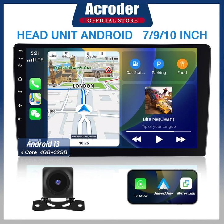 【Ada Kipas Pendingin】Head Unit Android 4G+32G/64G IPS Screen 7/9/10 Inch Android 13 Navigasi Double Din WiFi GPS FM Bl