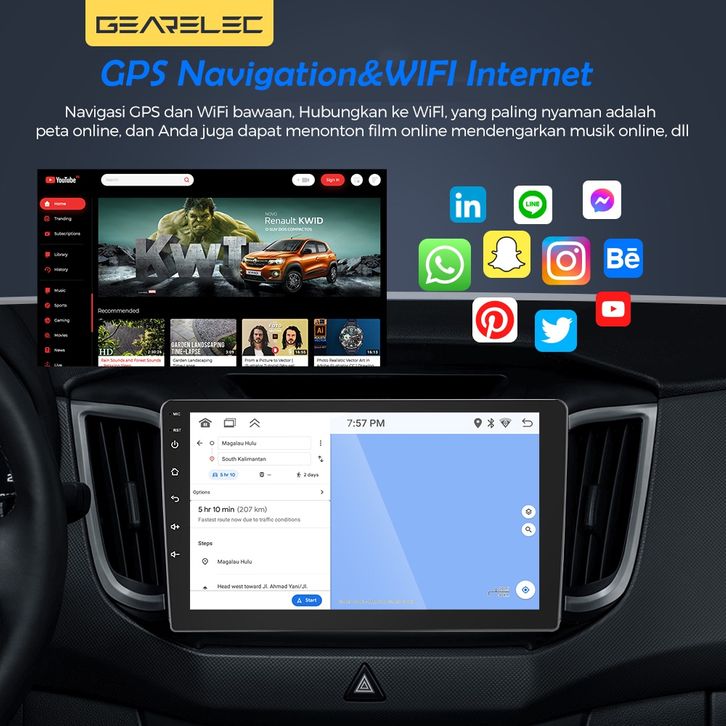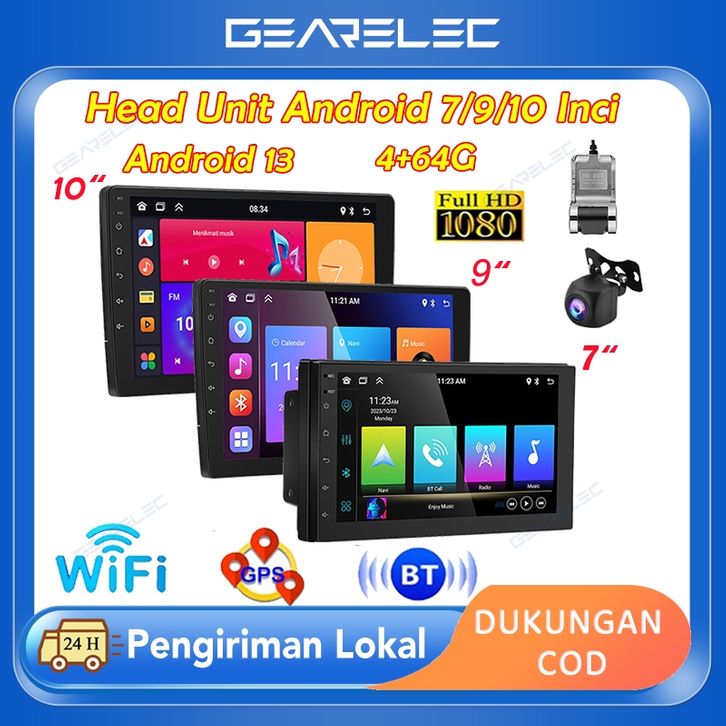 GEARELEC Head Unit Android13 4G + 64G car radio Mobil Navigasi 7/9/10 Inci with 48 tema