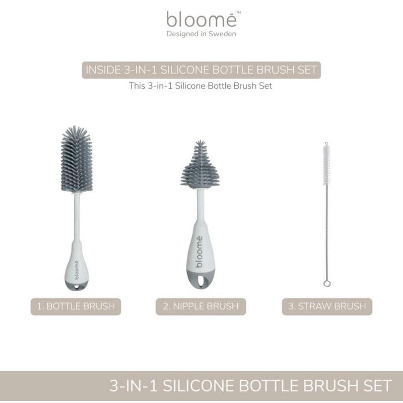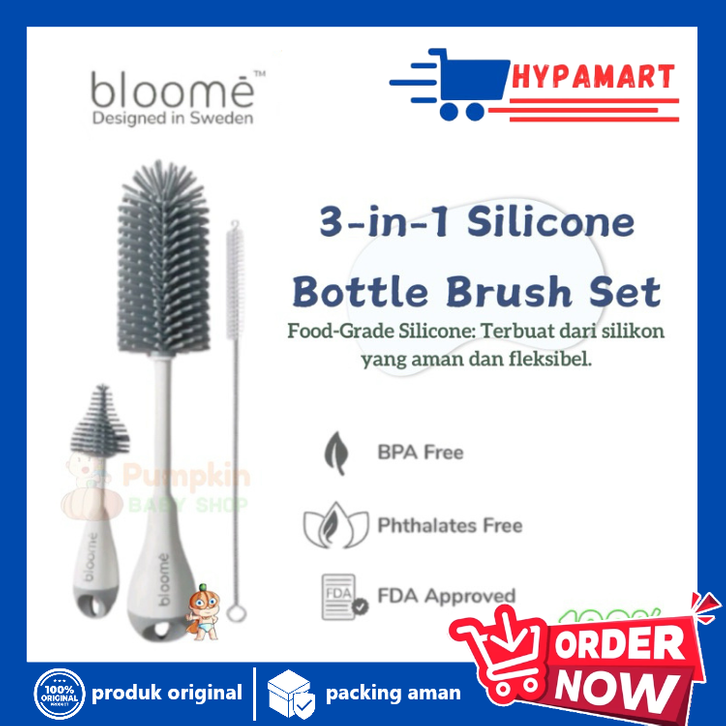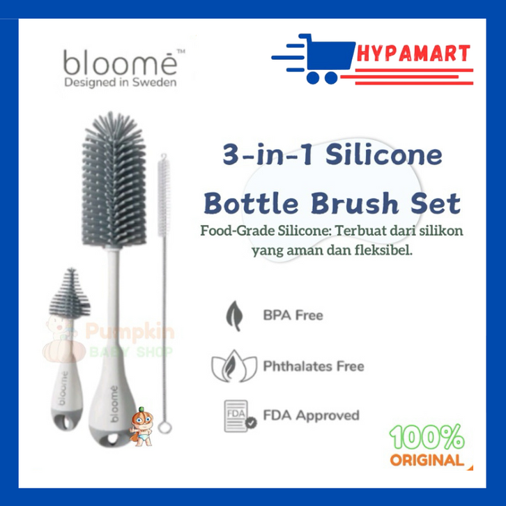 Bloome 3in1 Silicone Bottle Brush Set - Sikat Botol silicone bayi HYPAMART / KEBUTUHANIBU DAN ANAK / TERBARU MURAH / OFF