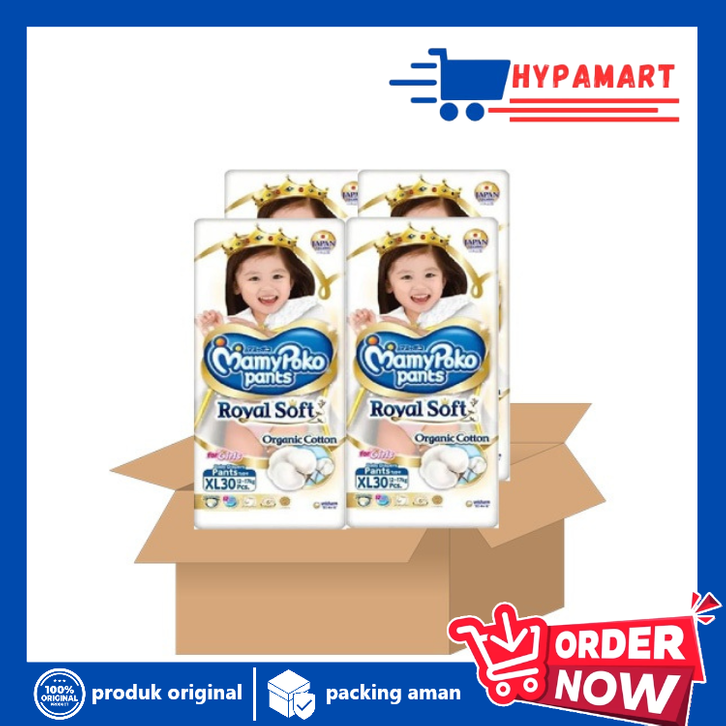 MAMYPOKO ROYAL SOFT PANTS PAKET 4 BALL / 1 KARTON S46 M42 L34 XL30 XXL24 BOY GIRL S 46 M 42 L 34 XL 30 XXL 24 BOY / HYPA