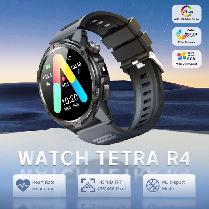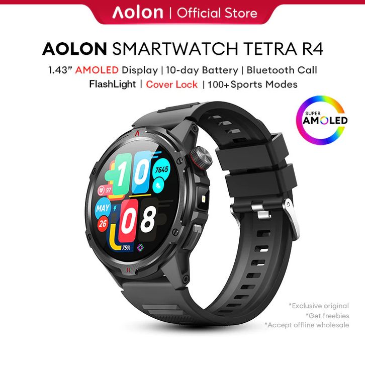 Aolon Tetra R4 Smart watch Amoled Display - AOD Cover-Lock Compass Bluetooth Call - Heart Rate Blood Oxygen SleepMonitor