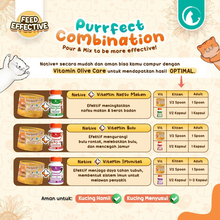 NATIVE PLUS OLIVE CARE VITAMIN KUCING CAT KITTEN ADULT SUPLEMEN NUTRISI MAKANAN HARIAN KUCING PENAMBAH NAFSU MAKAN KUCING OBAT GEMUK PENGGEMUK KUCING GEMBUL KULIT BULU SEHAT TULANG KUAT