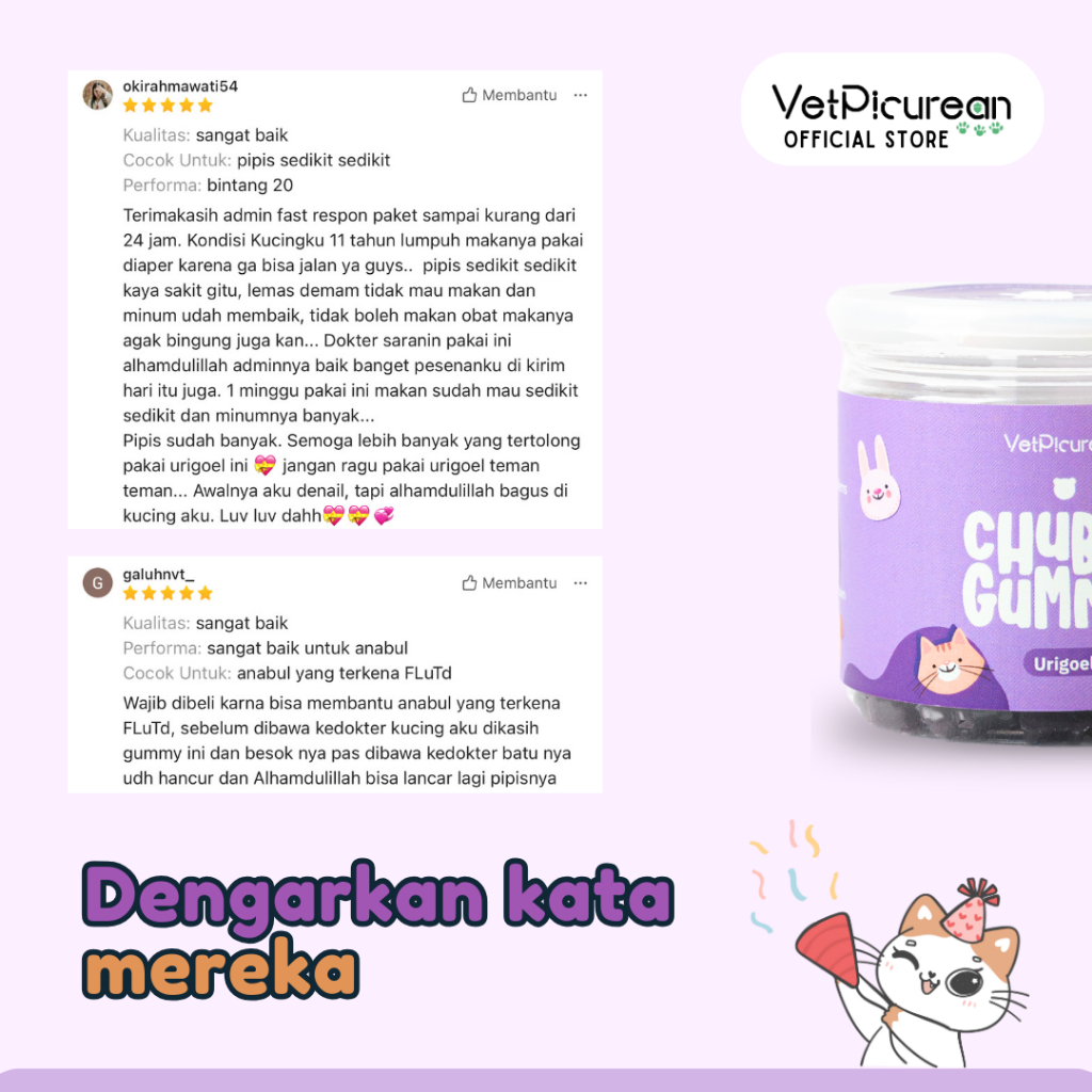 VETPICUREAN CHUBBY GUMMY URIGOEL | VITAMIN URINARY KUCING ANJING UNTUK FLUTD & KENCING BATU