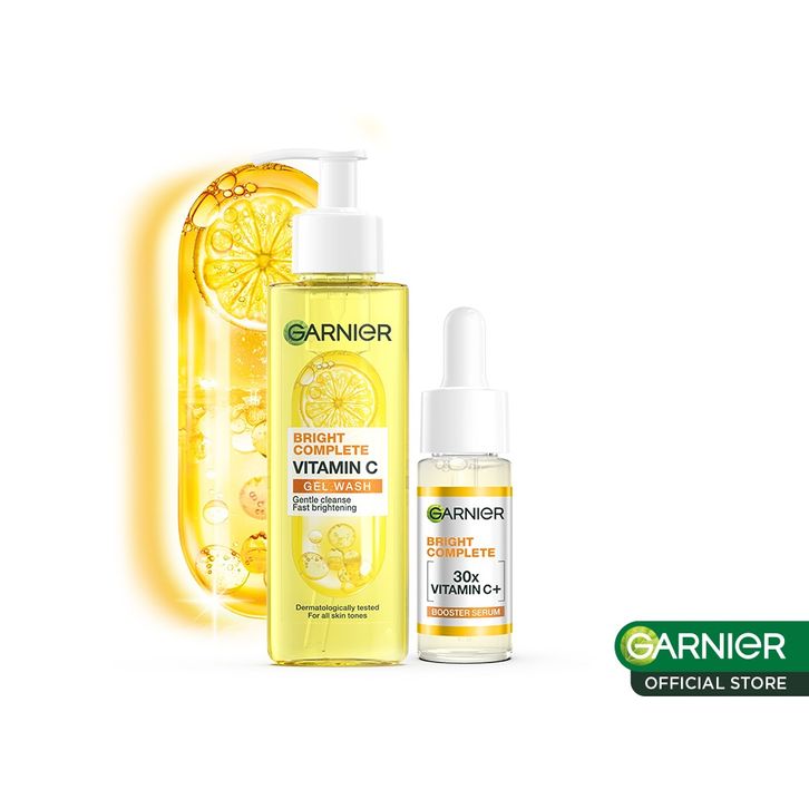 Garnier Gentle Brightening Set Bright Complete Vitamin C Serum 15ml + Vitamin C Gel Wash 120ml - Skincare Kulit Cerah