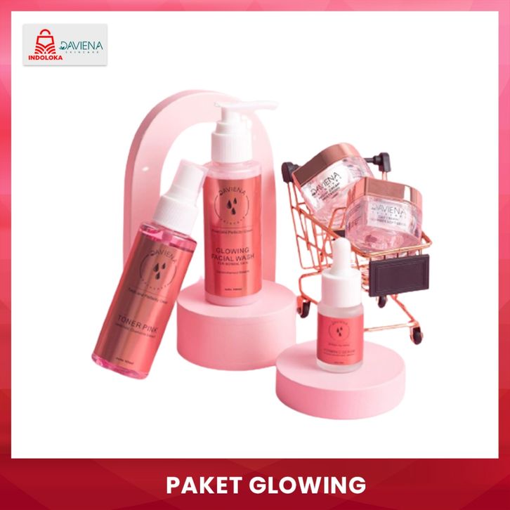 Daviena Skincare Paket Glowing Series - Paket Pencerah Glowing, Pelembab, Memudarkan Bekas Jerawat, Mengencangkan Kulit